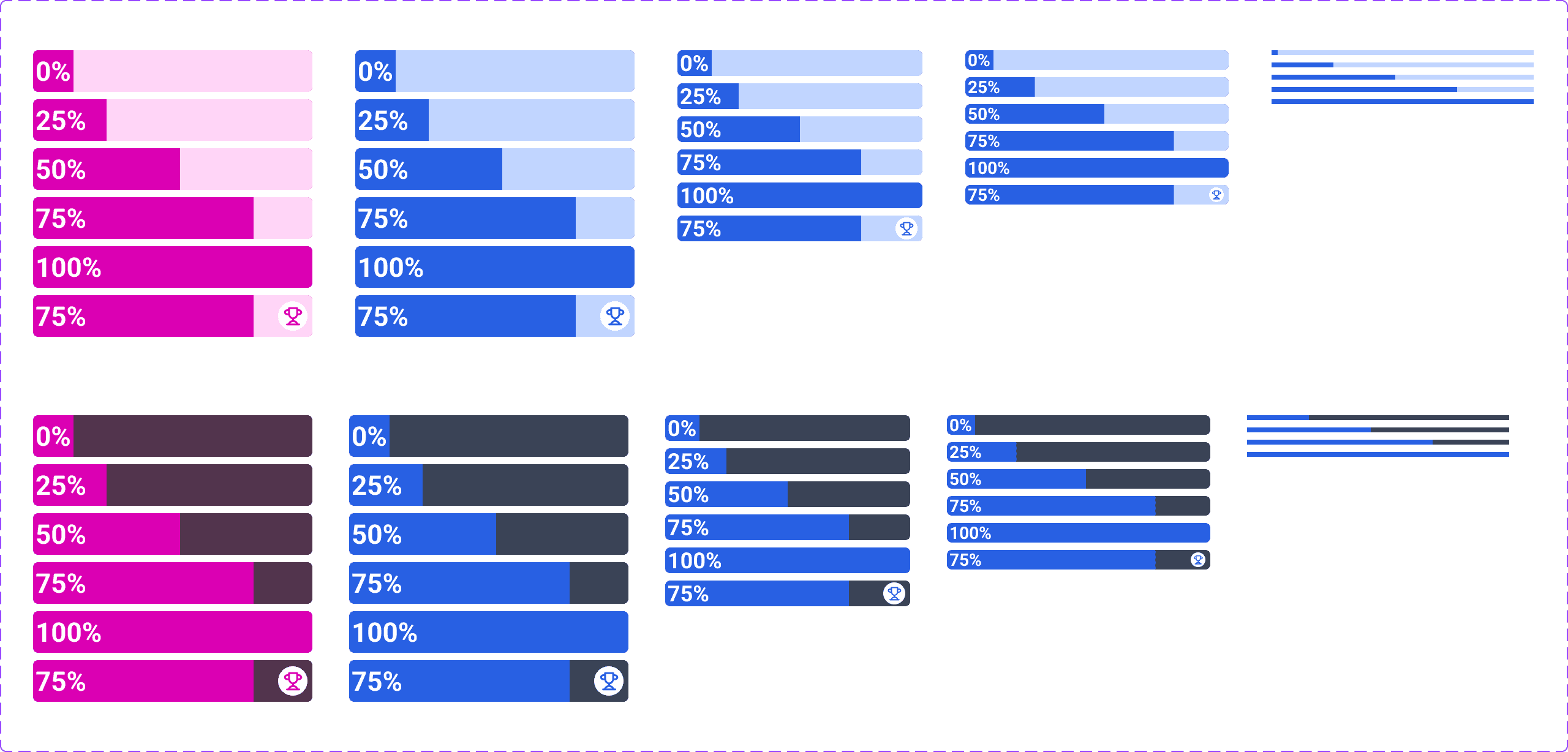 Used grid and multi-screen layouts for higher counts (7–12 outcomes)